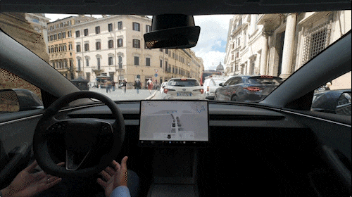 比如在多弯道、路口的意大利城区,特斯拉FSD的方向盘也打出了游刃有余的气度。