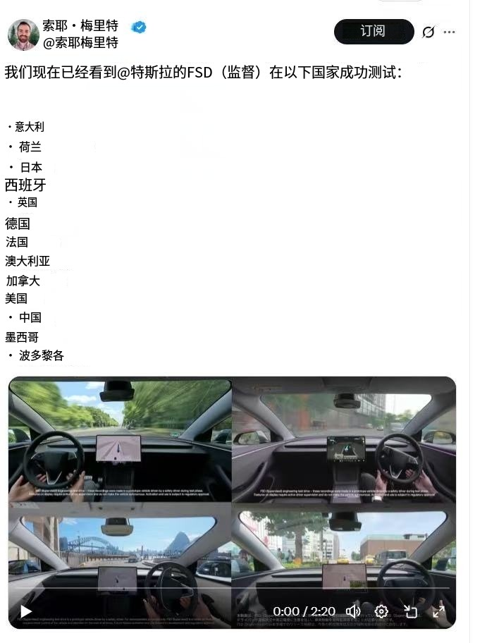 当然,特斯拉FSD目前的“主场”当属欧美地区。