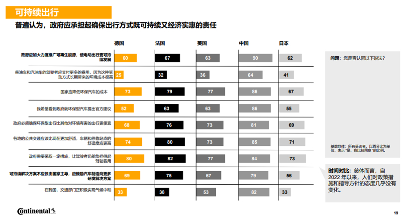 即便是与新能源汽车接受度最高的中国相比,欧盟对内燃机的禁售政策都稍显激进。《2024未来出行趋势调研报告》显示,在可持续出行方面,中国消费者的认可度达90%,而德国、法国等欧盟用户对政府必须大力推广可持续出行的认可度只有六成。