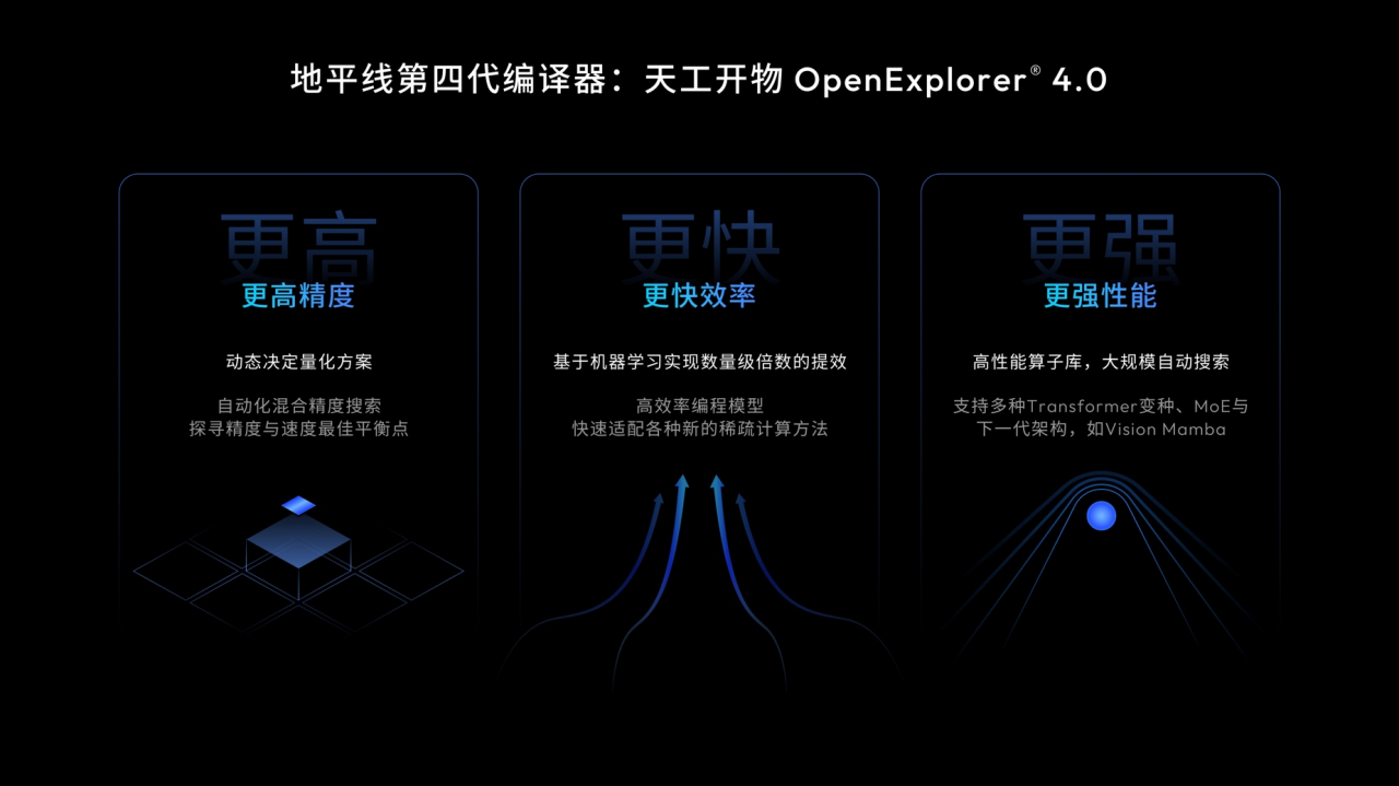 所以我们第四代编译器天工开物的4.0,将会走向更高的精度、更快的效率和更强的性能。