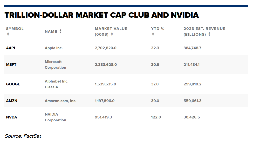 继苹果、微软、Alphabet和亚马逊后,英伟达将成为目前市值达到1万亿美元的第五家美国上市公司。外媒认为,英伟达最早可能在5月25日实现市值破万亿美元。
