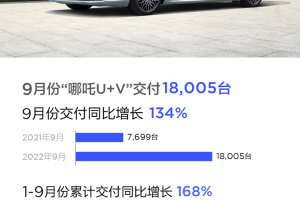 10月1日,哪吒汽车9月交付量出炉。9月,哪吒汽车交付18,005台,再创历史新高,同比增长134%,实现连续…